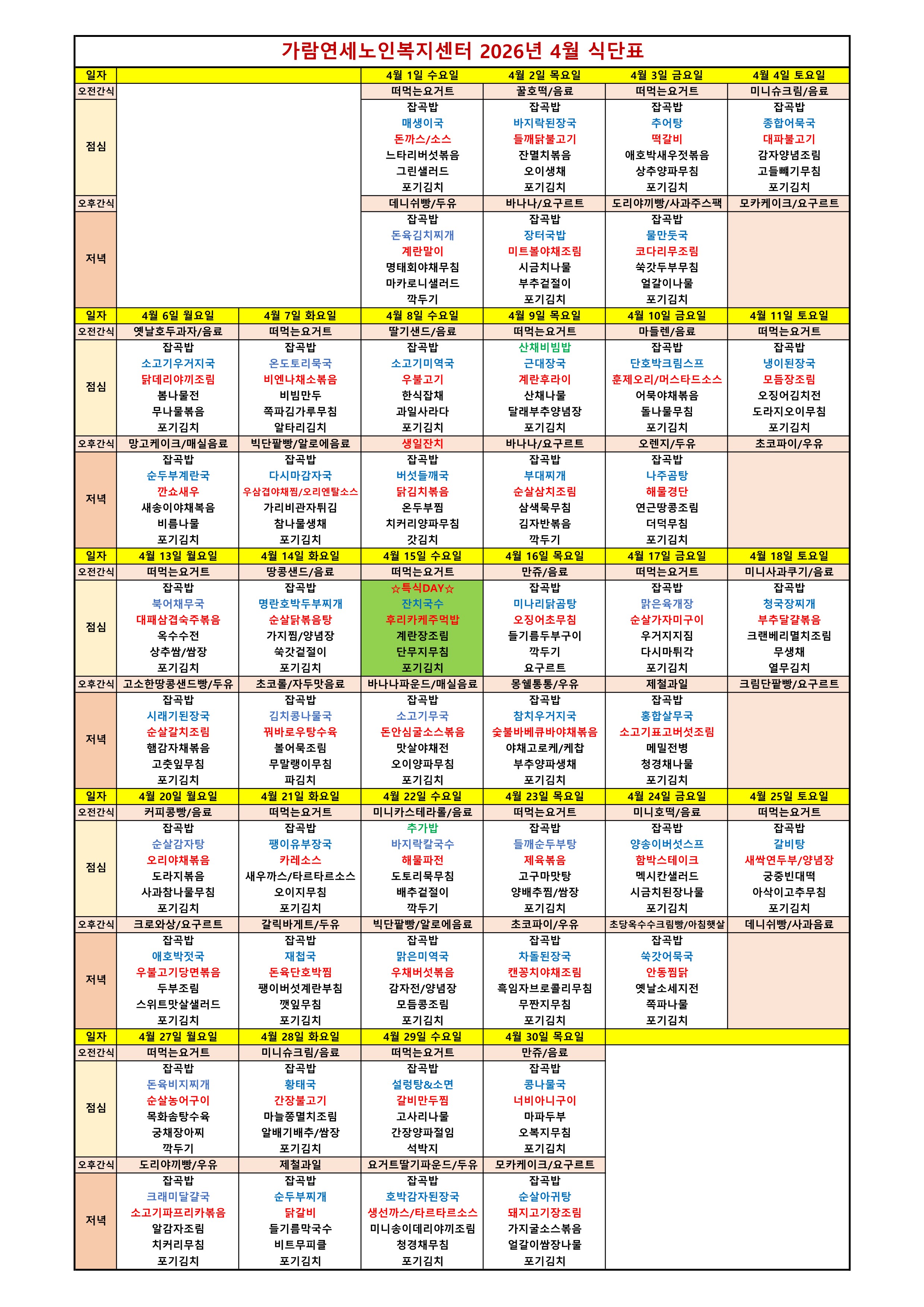 2026년 4월 식단표
